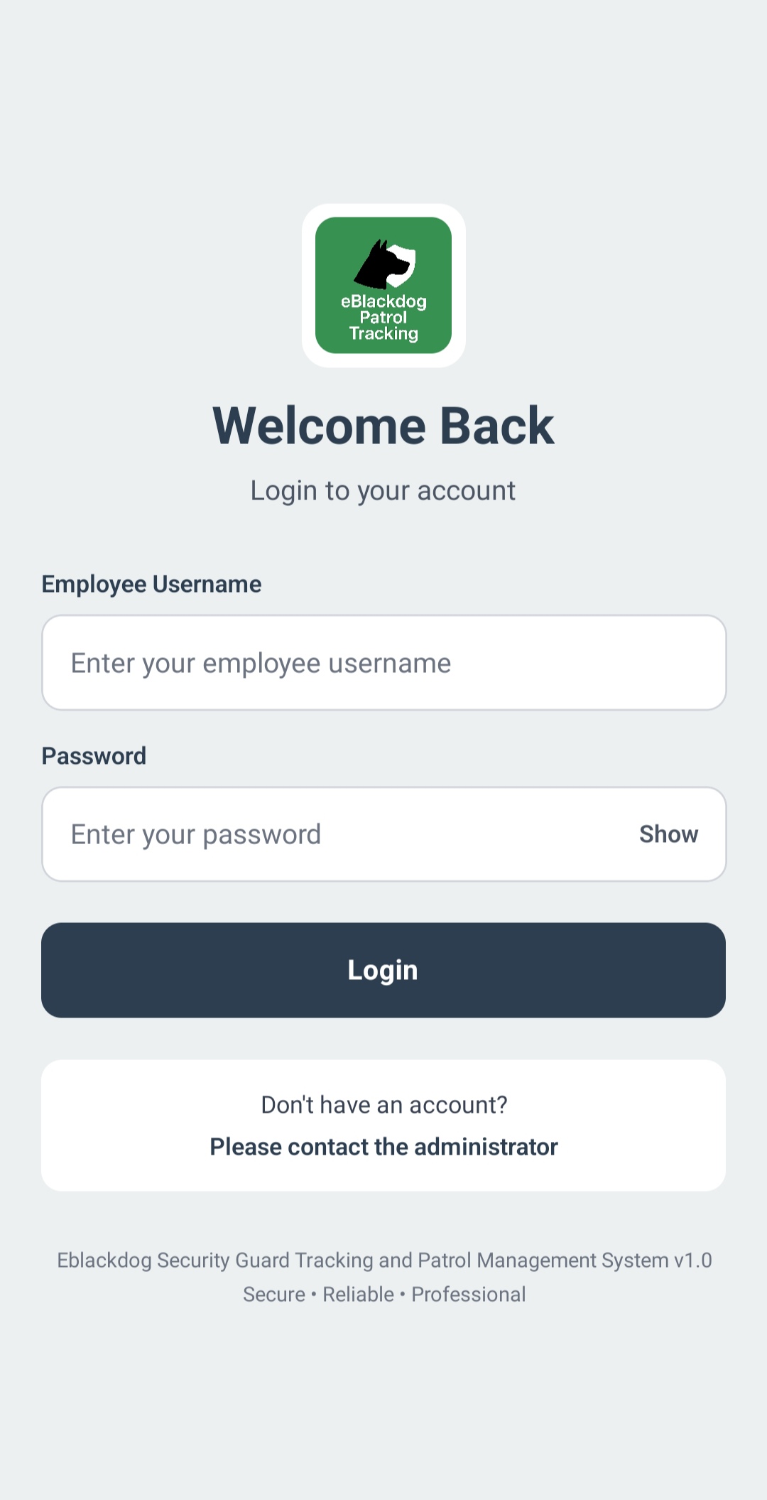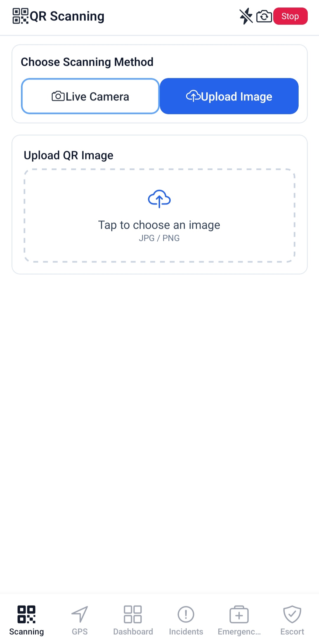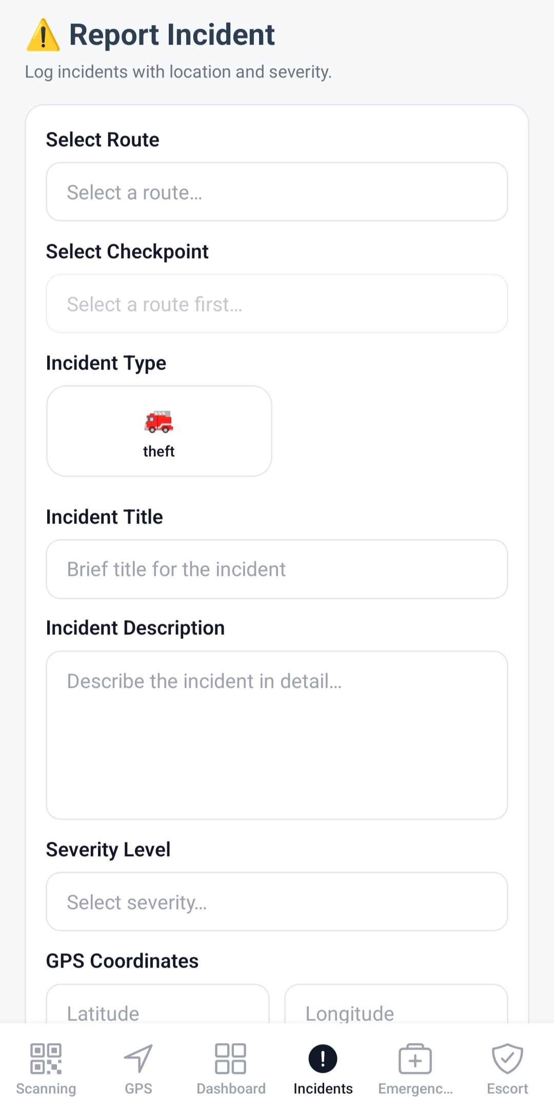 - • Quick Actions: QR scanning, GPS tracking, incidents, emergencies, offline mode, patrol reports.