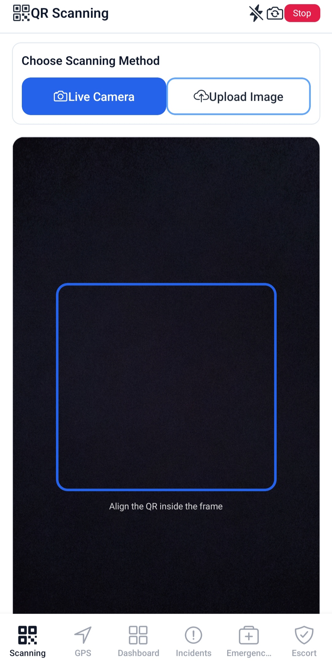 - • KPIs: total scans, active patrols, incidents, emergencies, distance covered
